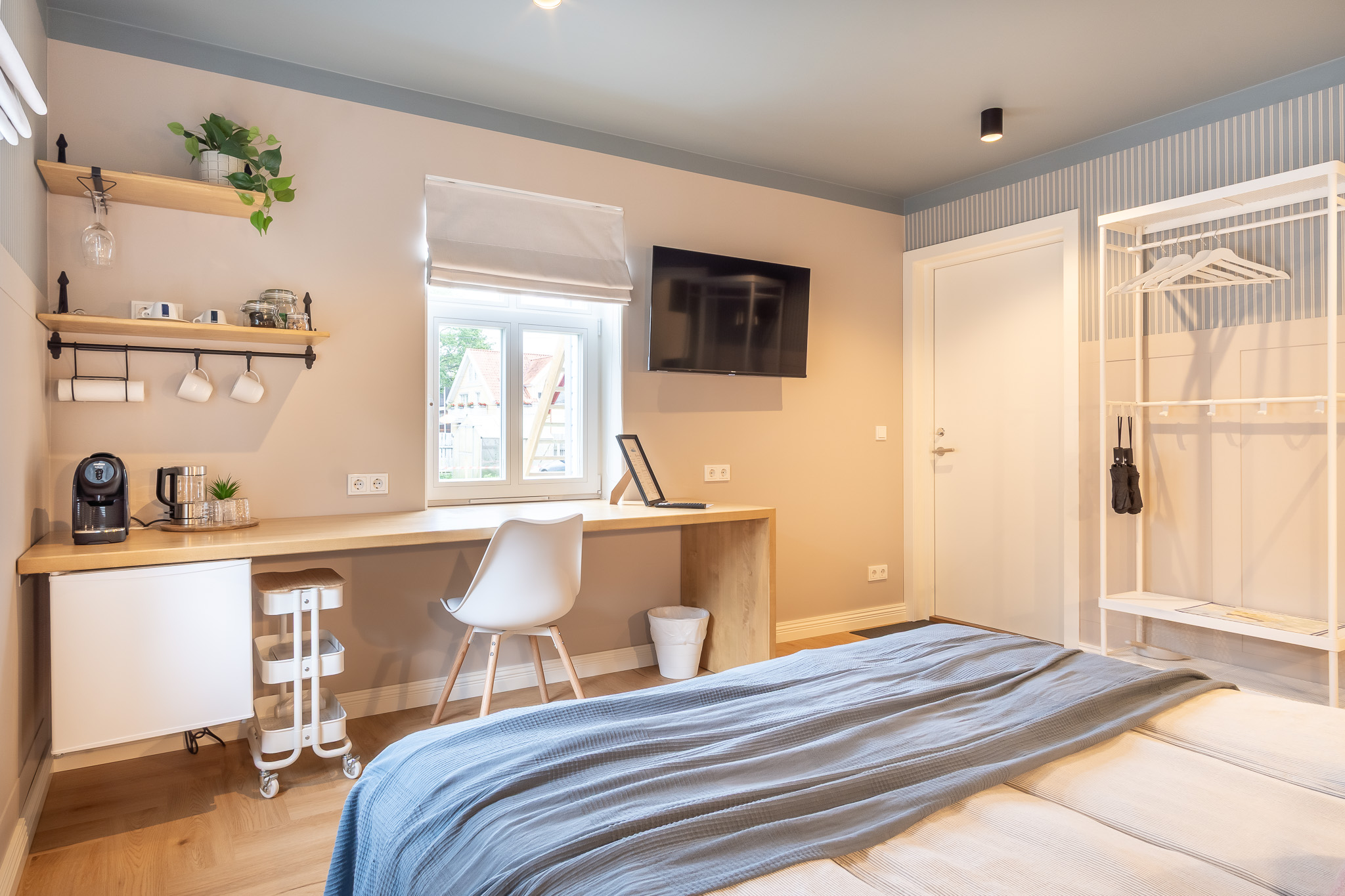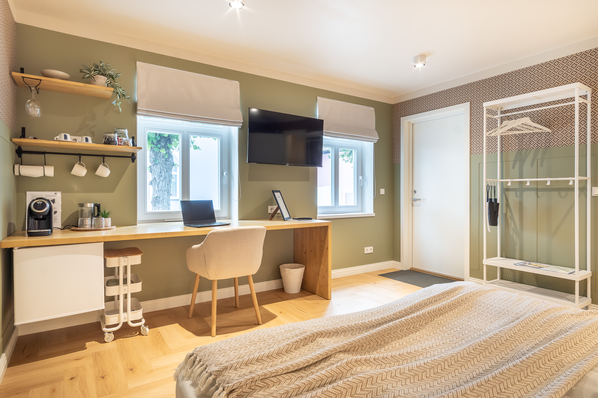 Töötegemiseks suur kirjutuslaud ja hea wifi ühendus. Oma lemmiksaateid saad vaadata GO3 või Netflix vahendusel.