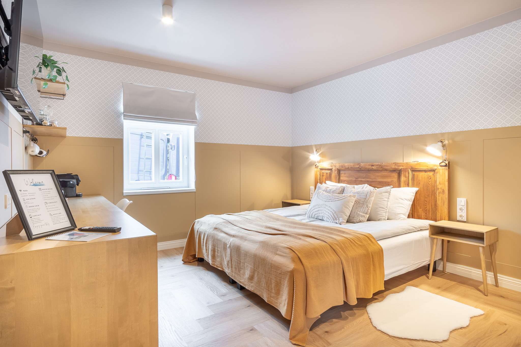 Hea une toob mõnusalt lai 180 cm voodi. Toas on privaatne WC koos dušinurgaga. Lisaks on toas väike külmkapp, kohvi ja tee tegemise võimalus ning vannitoas kohaliku looduskosmeetikatootja NURME shampoon, palsam, dušigeel, kätepesuseep.